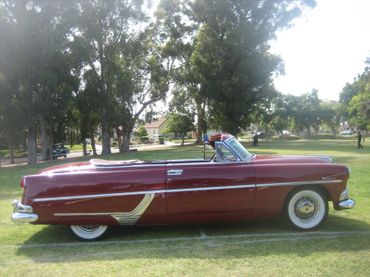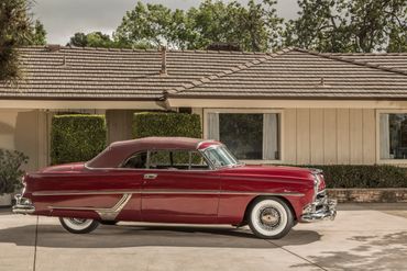 Less than 60 of these convertibles were made in 1954, the year before the merger with Nash Kelivinator. The car has a twin H (dual Carb) 308 CUI flat head 6 made famous in NASCAR and later by Pixar with Doc Hudson. This car has power windows, steering, brakes, top, and an Borg Warner Dual range Hydromatic transmission. The Maroon paint is absolutely stunning with just the right amount of chrome.