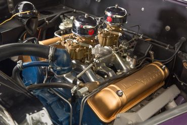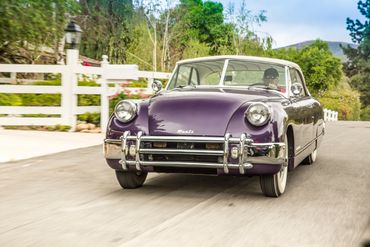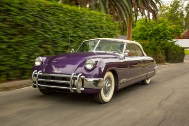 Muntz, being a flamboyant character, attracted that type of clientele. Most of the cars he sold were to the Hollywood crowd. Each tried to outdo the other with a more outlandish Muntz than their friend's. The rare Muntz is one that is a sedate color and interior. Pink, heliotrope, chartreuse, purple and bright lemon yellow were accented with such interior fabrics as snake skin, emu, alligator, leopard and many others. The final absurdity came when a radio personality in Chicago who had a boat fetish, had Muntz "deck" over the back seat area with mahogany planks, just like his boat. The car was then finished in a bright chartreuse! Besides these decor items, many customers ordered their new cars with even hotter engines. Multiple carburation, aluminum heads, hot ignitions and 3/4 race cams were added as "soup up kits". Later cars were affixed with the new 317 cu. in. Lincoln overhead motor with the dual range Lincomatic (Hydromatic) transmission. These cars were incredibly fast.