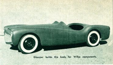 What a great idea, Woody thought. The Willys had been proven to be a real little power plant by Brooks Stevens in his Excalibur J earlier that year. Woody, of course, had access to those motors, and everything else Willys, through his own dealership. He and Howard had also heard of a young boat builder by the name of Bill Tritt, who had just begun marketing a Vibrin fiberglass sports car body which you could affix to your own running gear. Unfortunately the affixing was a little above the layman's capabilities. What Woody wanted was a completed sports car that used all Willys components. That way he could sell it as a new car through his dealership. This would also bypass the shortcomings of the buyer, having nothing to do but drive the car off the show room floor. But would this body affix itself to a Willys chassis? After meeting with Bill Tritt over at Glasspar, he found that Bill, sometimes used a custom hand built frame, built by Harold ''Shorty'' Post, a noted hot rod builder of the day, with some Glasspars, where the buyer did not have his own frame to use for his project. The problem was solved, with the guidance of Tritt & Miller, by having Shorty Post fabricate the sturdy frame that would accept all Willys Jeepster suspension components and adapt itself to the Glasspar body.