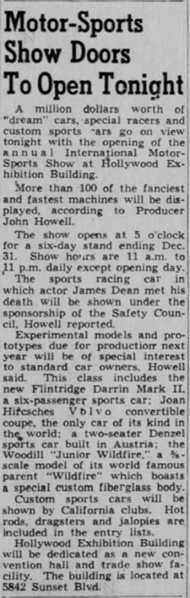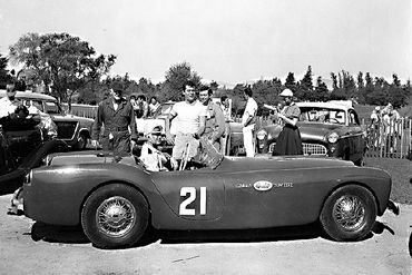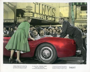 Woodill went back to his publicity mode after the Willys breakup. He saw to it that the Wildfire was entered into three contemporary movies. Written on the Wind with Rock Hudson, Knock on Wood, a comedy, starring Danny Kay and, most notably, the Woodill starred in Johnny Dark. Here Johnny (Tony Curtis) starred as a young and upcoming car designer who built a sports car called the Idaho Special. To prove it was worth its salt to his boss, he enters it in a Mexico to Canada cross country road race. After many harrowing trials, the car wins! The car, of course, was the Wildfire. The movie also debuted many other glass cars of the time, but the Woodill stood far out in the pack.