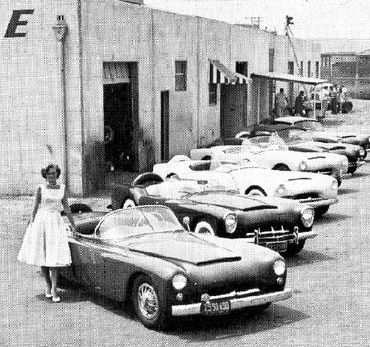 The hand laid Tritt bodies were of the highest quality, far surpassing the Kaiser Darrins and Chevrolet Corvettes which were to come later. Darrins and Vettes were pressed, similar to the way steel is formed. Too much of the resin was squeezed out of the glass, which led to premature cracking and warping. Once the bodies and frames were delivered, Howard Miller assembled the components and made the final adjustments. The little Willys engine was set far enough back in the car to give them an almost perfect 50/50 weight ratio. Cornering was superb and the car was proclaimed, with the addition of an optional hot cam, three carbs and headers, to be able to obtain speeds in excess of 120 MPH!